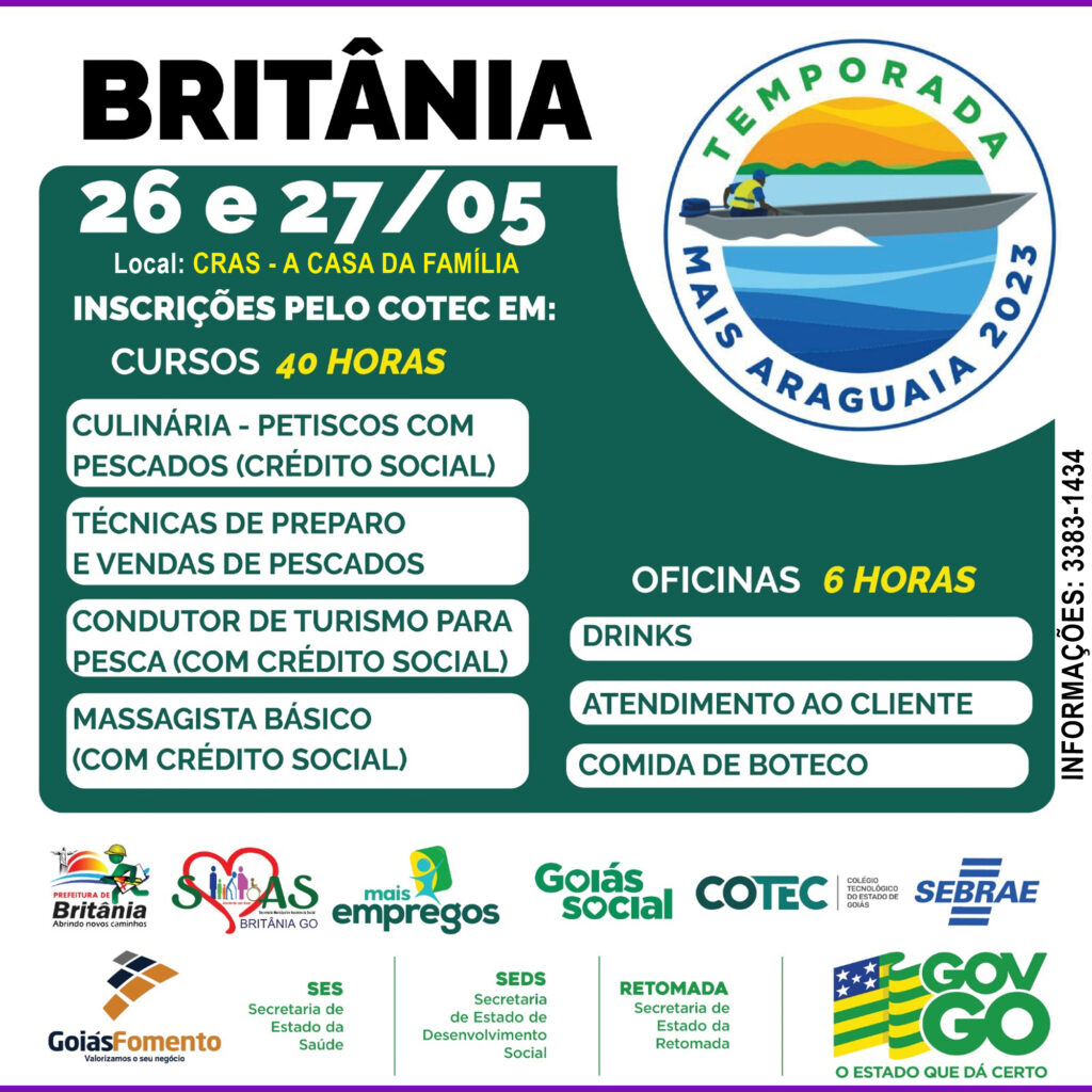 AÇÃO TEMPORADA MAIS ARAGUAIA / BRITÂNIA-GO (Cursos Oferecidos)
