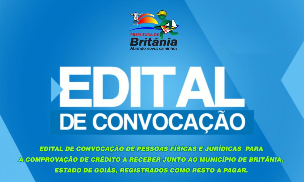 EDITAL DE CONVOCAÇÃO DE PESSOAS FÍSICAS E JURÍDICAS PARA A COMPROVAÇÃO DE CRÉDITO