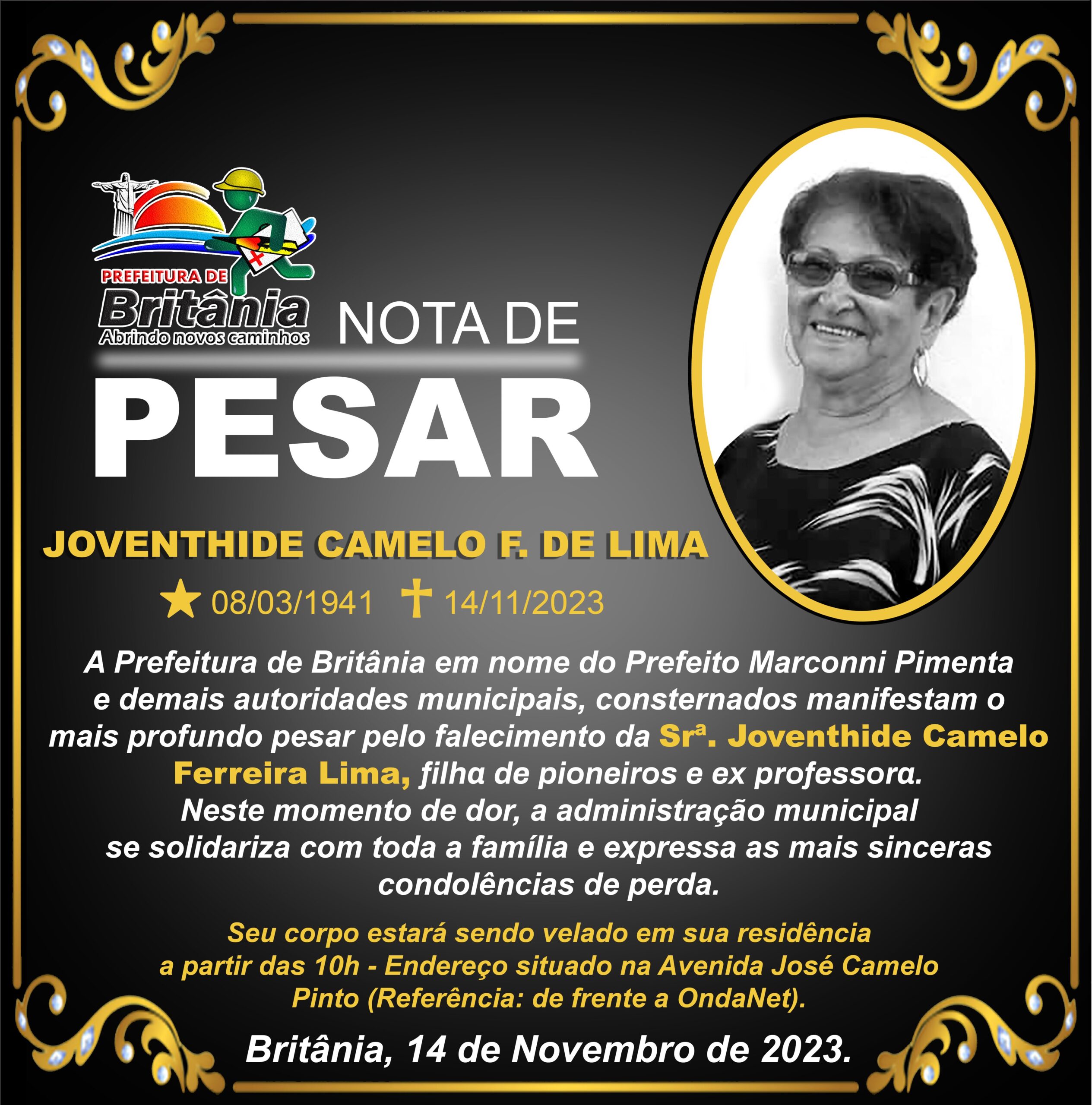 NOTA DE PESAR: Joventhide Camelo Ferreira Lima.