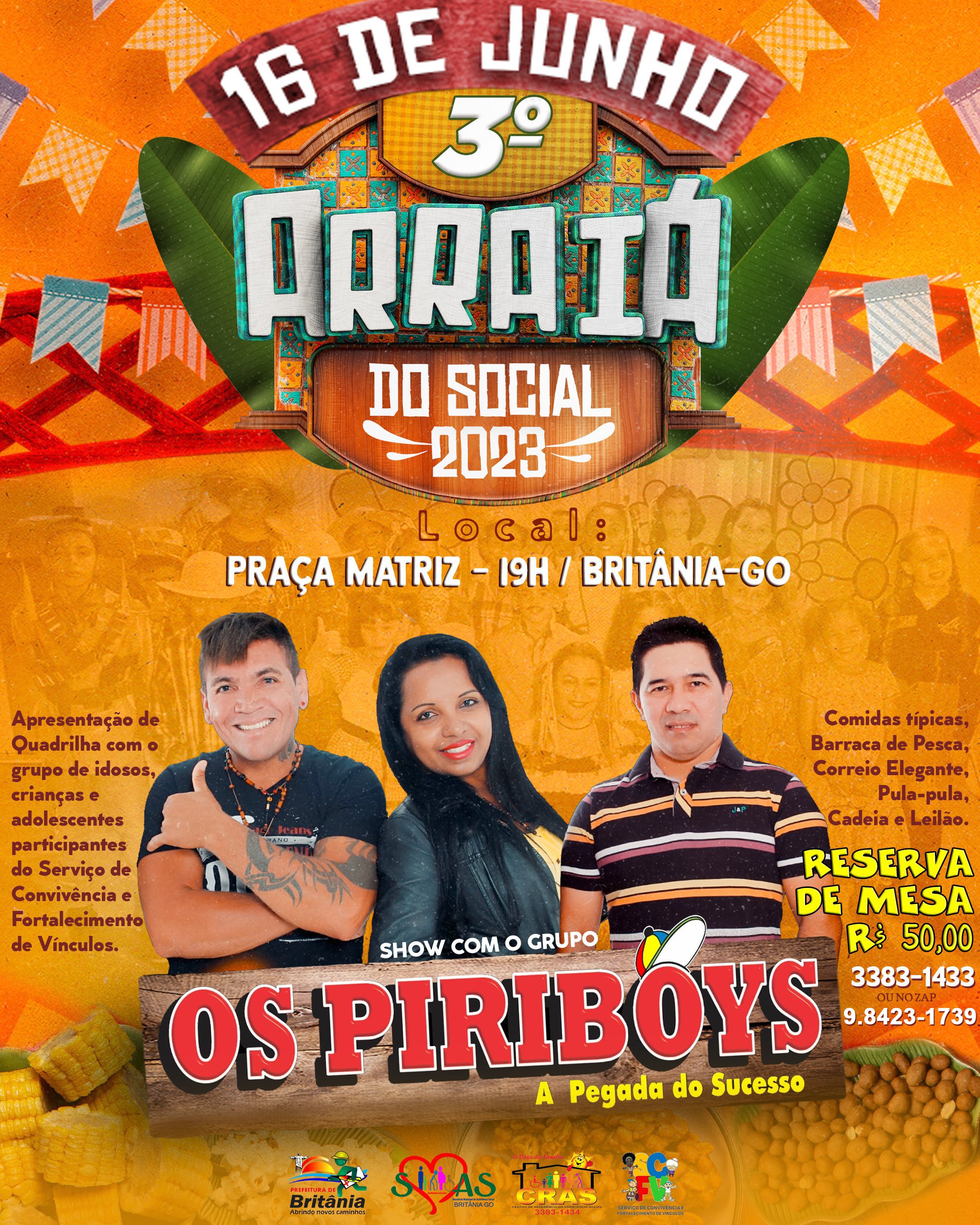 SOCIAL: PARTICIPE DO 3º ARRAIÁ DO SOCIAL 2023 EM BRITÂNIA (16/06).