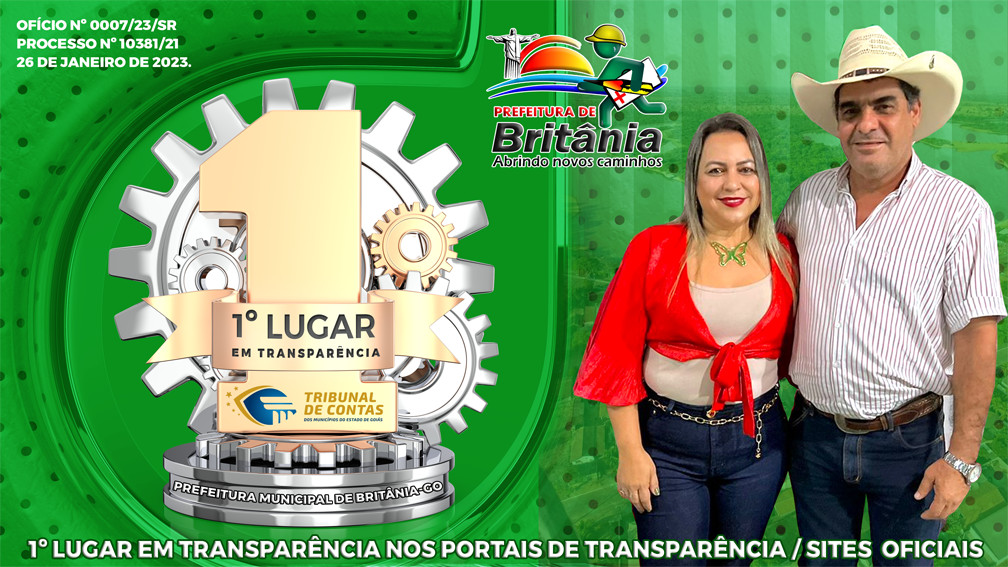 TCM: TRIBUNAL DE CONTAS DOS MUNICÍPIOS DO ESTADO DE GOÍAS APROVA A PRESTAÇÃO DE CONTAS DA GESTÃO MARCONNI PIMENTA EM BRITÂNIA REFERENTE À 2022 E O MUNICÍPIO FICA EM PRIMEIRO LUGAR NO RANKING DE TRANSPARÊNCIA NO ESTADO (LEI DE RESPONSABILIDADE FISCAL).